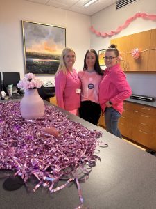 Bleiki dagurinn var haldinn hátíðlegur í gær hér á Reykjalundi líkt og víða í samfélaginu. Hér klæddust nær allir einhverju bleiku til að sýna stuðning og vekja athygli á árvekniátaki Bleiku slaufunnar og baráttunni gegn krabbameinum hjá konum.