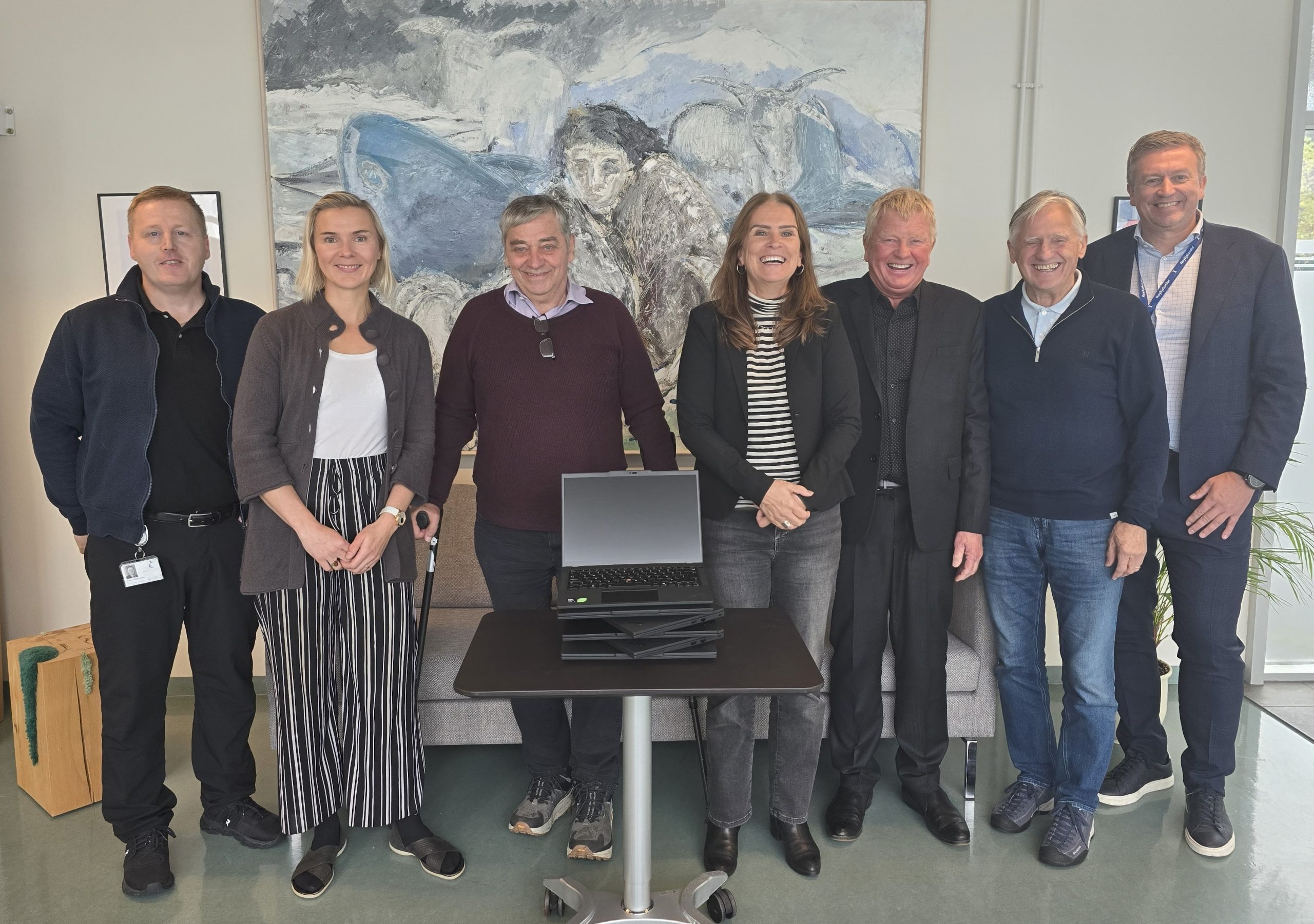 Myndin er af fulltrúum Hollvinasamtakanna ásamt Fannari forstöðumanni upplýsinga- og velferðartækni, Ellu Björt taugasálfræðingi og Pétri Magnússyni.