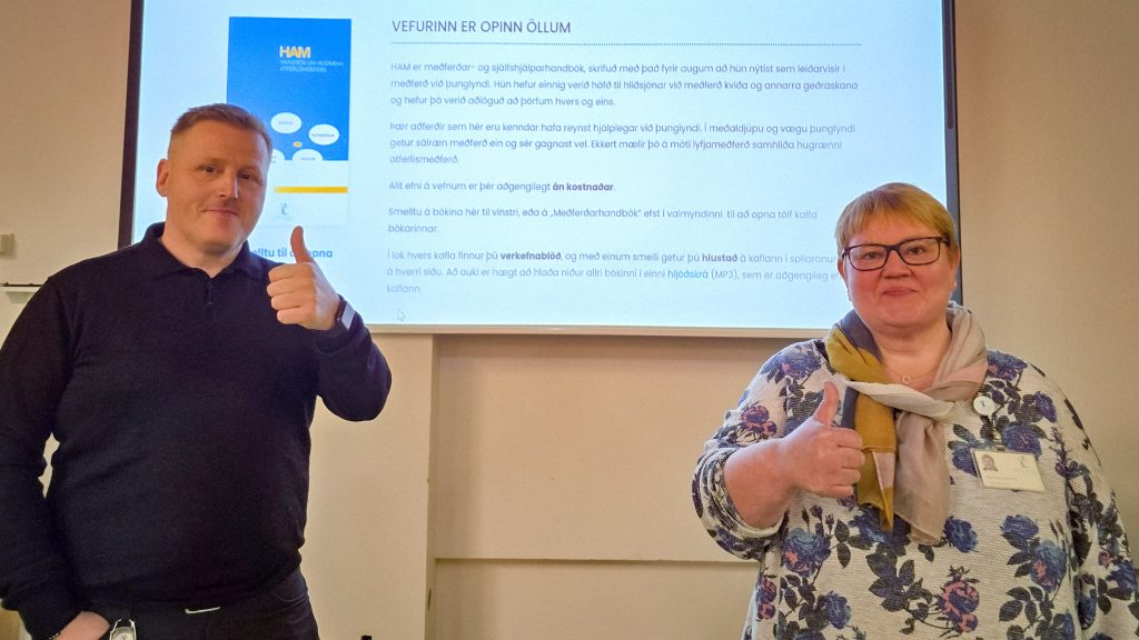 Á dögunum fagnaði Reykjalundur nýrri og endurbættri útgáfu af HAM-bókinni á netinu. Það eru þau Inga Hrefna forstöðusálfræðingur og Fannar, forstöðumaður upplýsinga- og velferðartæknimála sem héldu utan um verkefnið. Við óskum þeim, sem og okkur öllum til hamingju með áfangann!